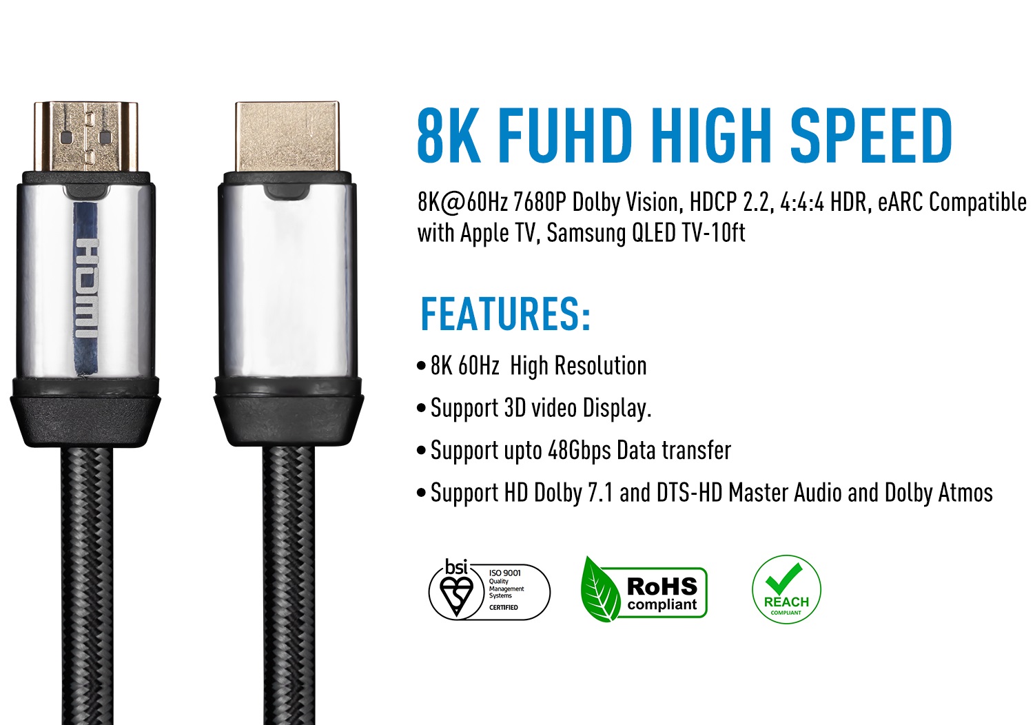 CTC tengingar’ Ultra 8 ÞÚSUNDproduct is currently the world’s HDMI snúru sem er í samræmi við8 ÞÚSUNDHDMI 2.1specification. It not only has a fast transmission speritstj of 56Gbps, but also has a unique design that is full of scientific and technological appearance. It supports 56Gbps transmission to meet the neritstjs of 8 ÞÚSUNDHDR transmission. A new generation of 8 ÞÚSUNDHDMI 2.1snúru. , Til að uppfylla ítrustu kröfur um hágæða flutning á hljóði og myndum heima í framtíðinni. Fyrir notendur, ef þeir vilja forðast að kaupa bráðabirgðabúnað, er besta leiðin að velja nýjustu forskriftir iðnaðarstrengsins í einu skrefi. Ég trúi því að þúmun be satisfiritstj with the 8 ÞÚSUNDvisual after you choose CTC tengingar Ultra 8 ÞÚSUNDHDMI 2.1Kapall .